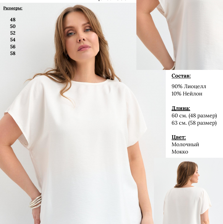 Модель прямого силуэта с цельнокроенным рукавом. Низ ровный.*Рекомендуем добавить к заказу второй цвет этой модели - мокко. Лиоцелл-ткань нового поколения, его еще называют тенсель-отличается износостойкостью.Это натуральное волокно.Сырье-целлюлоза австралийского эвкалипта. Мягкая шелковистая ткань с легким блеском прохладой окутывает тело в жаркую погоду,быстро впитывает влагу и также быстро сохнет.В нем не жарко летом.Гипоаллергенно,что подходит людям с проблемной кожей.На ткани не скапливаются бактерии,так как обладает антимикробными свойствами. И очень приятна на ощупь! Также не мнется и не теряет цвет даже при многократных стирках. Ткань относится к премиум-сегменту,так что вы будете чувствовать себя в блузе защищенными и находиться в абсолютно комфортных условиях! Крой блузы универсален для комплектации с другими видами гардероба и вы погрузитесь в атмосферу комфорта и стиля, выбрав эту уникальную блузу! Идеально подойдет для работы, прогулок и встреч с друзьями. Элегантная простота дизайна подчеркнет вашу индивидуальность и безупречный вкус. Добавьте нотку роскоши в ваш гардероб по доступной цене – заказывайте прямо сейчас и ощутите все преимущества лиоцелла уже сегодня!Эта модель будет для вас одной из любимых !